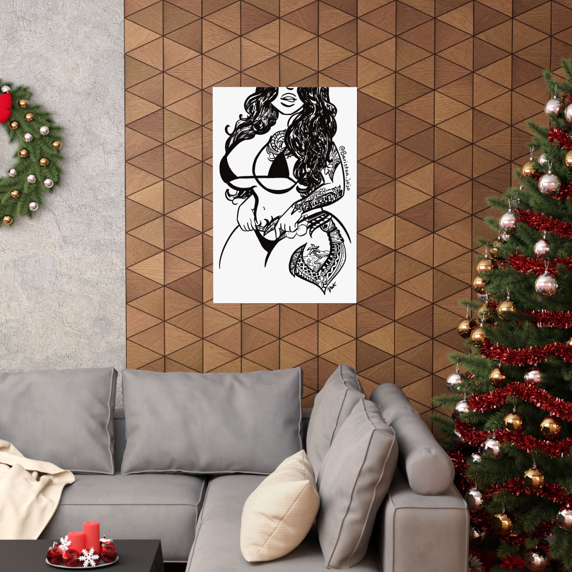 This work was inspired and requested by a real person, done in an ink style the original work was made with permanent marker on a whiteboard but I re-inked the drawing in procreate so that she can hang on other peoples walls and hopefully inspire even more people. The poster is available in 7 sizes, if this work resonates with you please follow my muse : barista.jojo on insta.